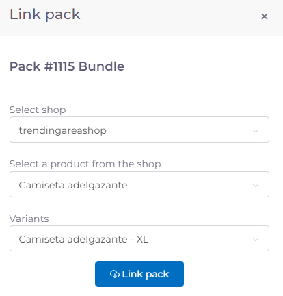 Once we have linked, the column stays open and gives us the possibility to continue selecting store and product. We would fill this in if we want to link the same product pack in several stores. It is very useful to link a pack and a product that we sell, for example, in different countries.