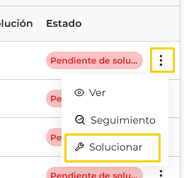 Para comenzar a dar solución a las incidencias, se debe dar clic en la opción de los 3 puntos.