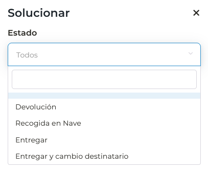 En caso de querer ver el listado completo de incidencias, es decir, las resueltas ya por parte del cliente, las resueltas por partes de la mensajería y las pendientes, deberán quitar el filtro de “Pendiente de solución”.