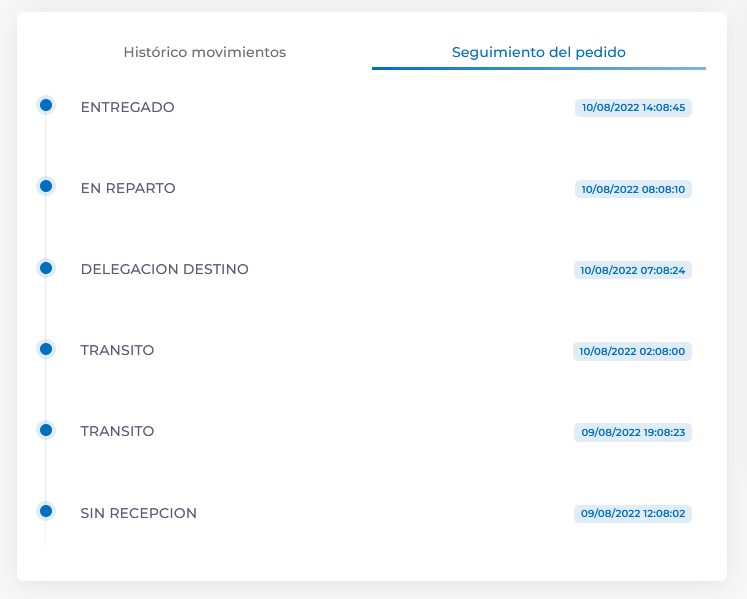 - Seguimiento del pedido: Muestra el estado del envío, desde que el pedido se encuentra ya preparado en el almacén hasta que es entregado al cliente. Puedes encontrar más información sobre cómo realizar el seguimiento de pedidos en este artículo.