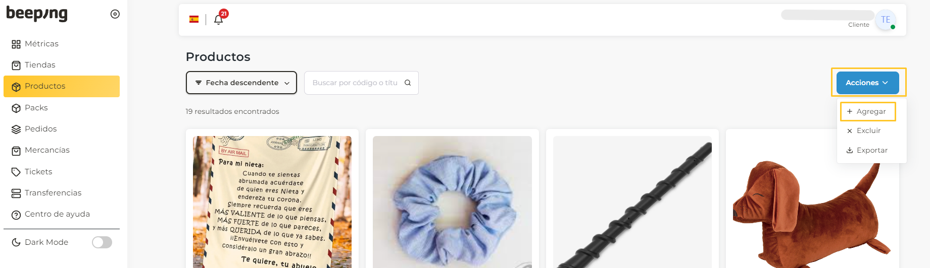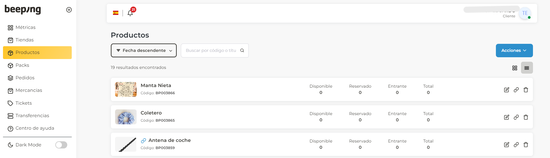 Este paso lo tendrás que realizar tanto si estás en el proceso de onboarding, para que estén tus productos en nuestro sistema, como cuando vamos a recibir una mercancía de un producto nuevo tuyo, ya que en la entrada de mercancía tendrás que reflejar el nuevo producto ya creado.