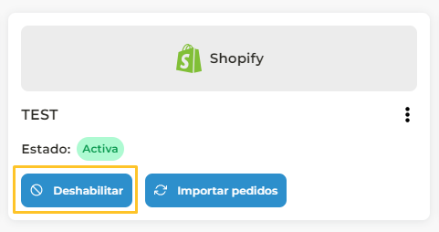 Para ello tienes que entrar al apartado Tiendas del panel principal de la izquierda. Allí tendrás que localizar la tienda que quieres deshabilitar y pulsar dicho botón.