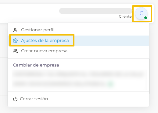 Para poder crear estados tienes que entrar en tu usuario y pulsar Ajustes de la empresa.