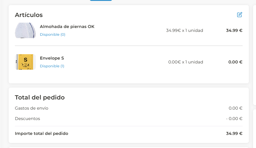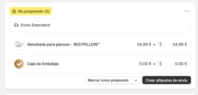 Es fundamental que el material de embalaje (cajas, sobres) o los flyers se añadan al pedido como un producto más. Esto garantiza un control de stock preciso y la correcta inclusión del material en tu envío.