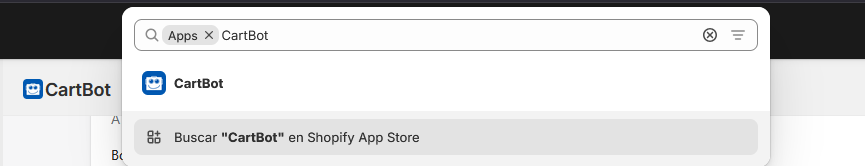 ▶️Accede a Shopify → Apps → CartBot.